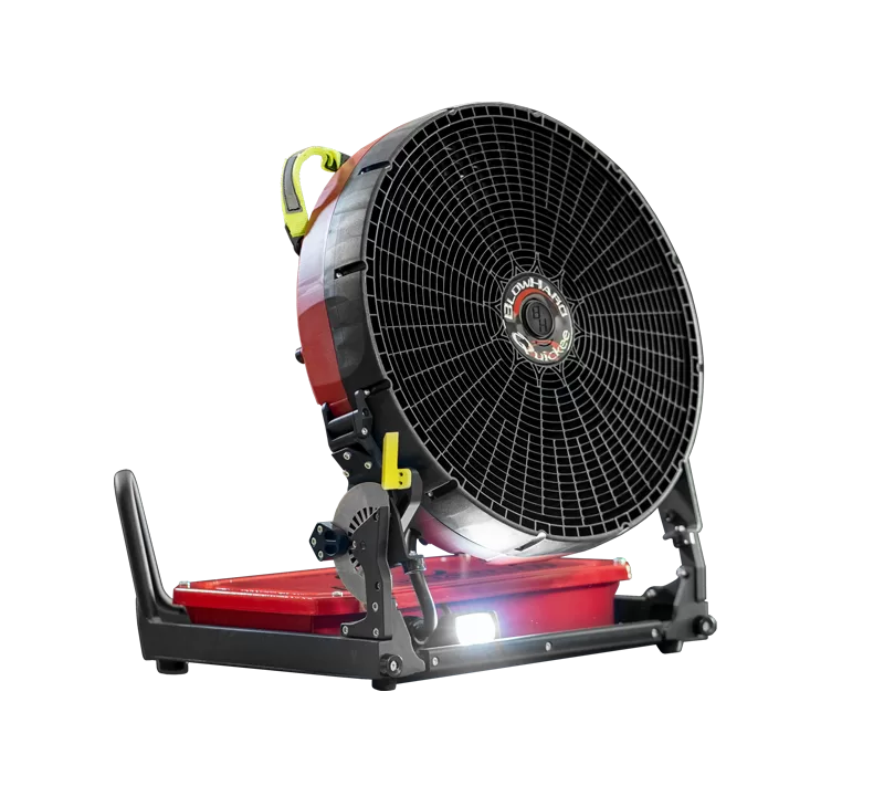 Not only is the shroud and blade size scaled up for a huge airstream with Commando, but the battery power as well, providing maximum energy in the airstream for ultra performance. Commando is also equipped with dual-power switching technology between battery and A/C and unlike all other companies in the industry, BlowHard fans hold the same power and performance on both options. The Ergo-Fold design reduces storage requirements while the integrated battery with a built-in maintenance and charging system does all the work for you, keeping usage simple and the truck clean and tidy, free of excessive chargers.