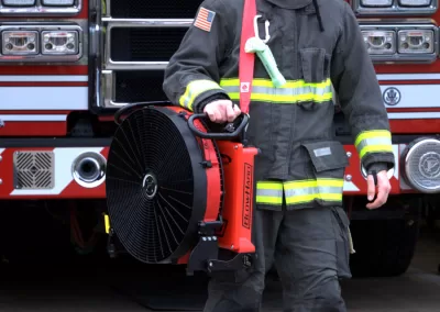 Equipped with the Smart-Tec Battery Management System, dynamic Operator Interface, and Diagnostics screen, this fan makes owning and operating a BlowHard easy and low maintenance. As the user adjusts the power knob, the bright LCD screen displays quick, responsive, data such as Power Level, CFM, Thrust, and Remaining Battery Time in hours and minutes to give firefighters power and control over unpredictable and